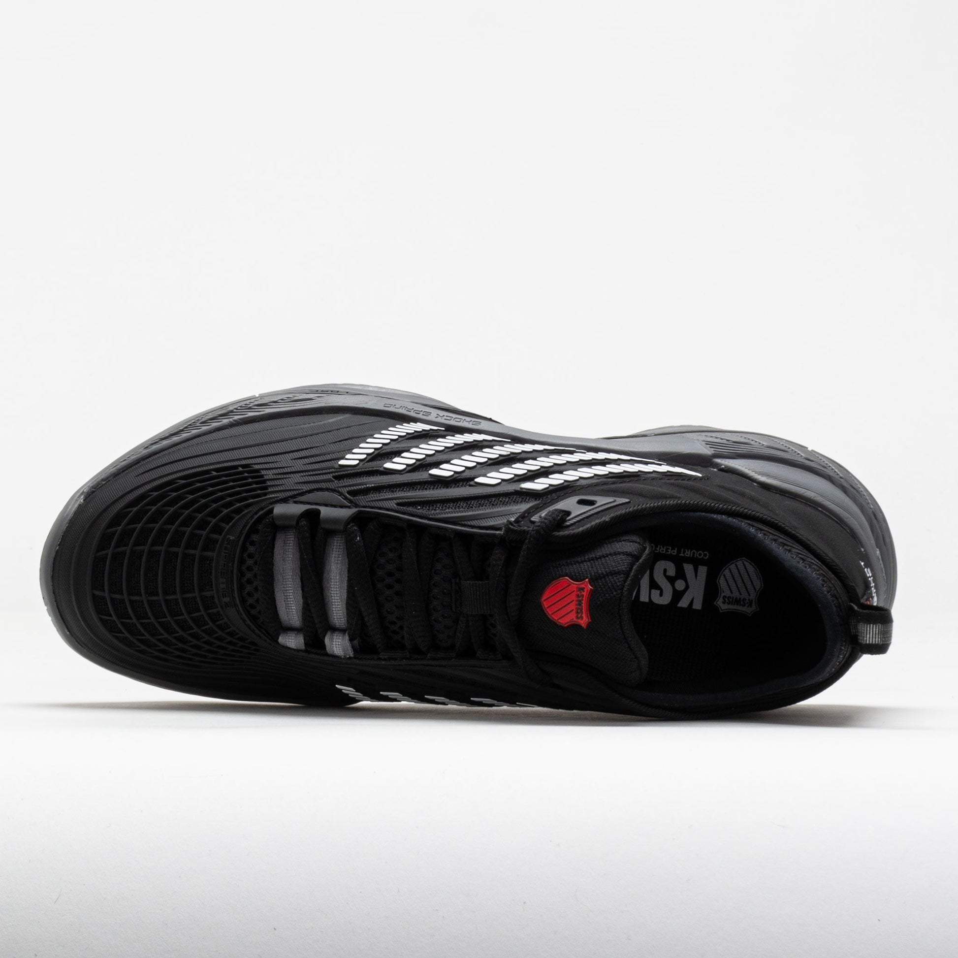 Reach the pinnacle in the K-Swiss Hypercourt Supreme 2! Updated with a more secure fit, improved support and extra durability, this tennis shoe provides maximum comfort during the match. Slide into a Durawrap X upper and stay protected while sprinting around the court. The dual-density midsole features a lightweight Surgelite top layer and a Shock Spring top layer for quick reactions. Enjoy traction and durability on any surface under the DragGuard 7.0 rubber outsole. Soft, light and responsive, the K-Swiss Hypercourt Supreme 2 brings you to the ball faster!